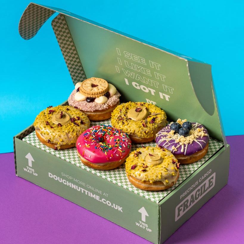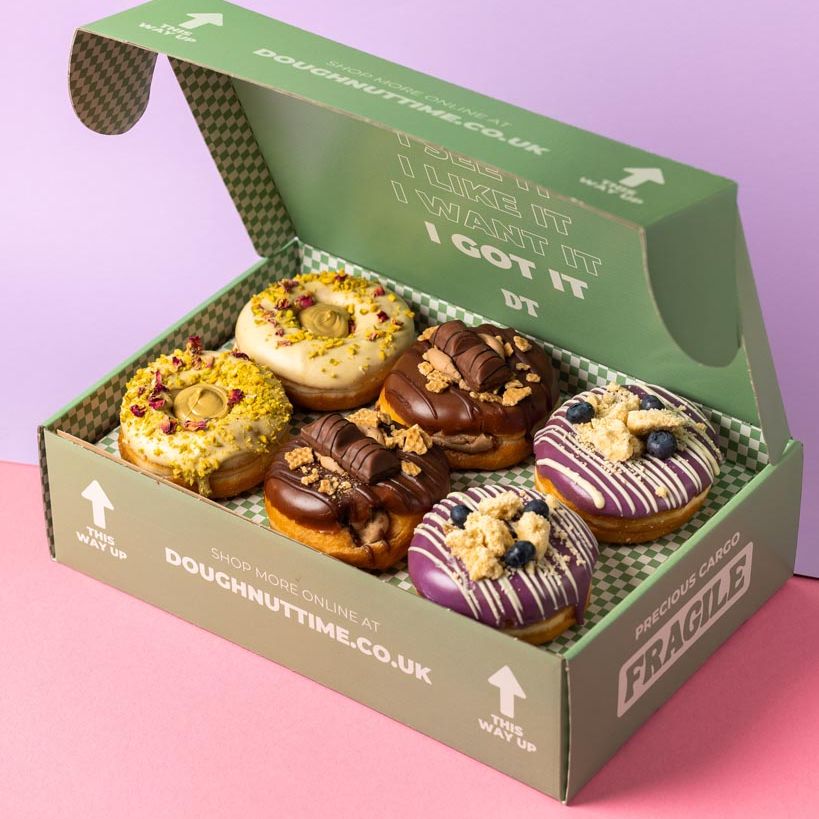 Realizamos envíos a cualquier lugar del Reino Unido, la UE y EE.UU. Con nuestro socio de envíos DHL Express, ¡tus donuts llegarán en menos de 24 horas!