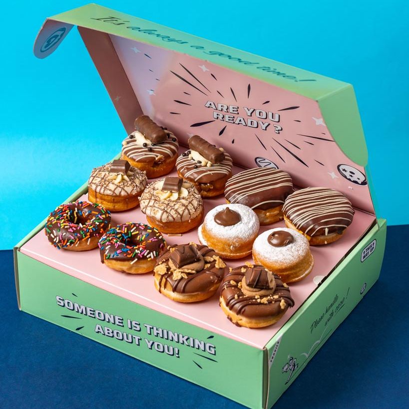 Nous livrons partout au Royaume-Uni, dans les pays de l'UE et aux États-Unis. Grâce à notre partenaire d'expédition DHL Express, les beignets arriveront chez toi en moins de 24 heures !